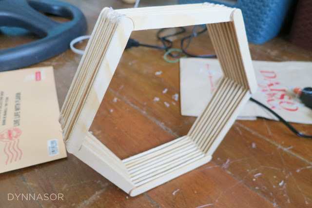 I've been wanting to hot glue gun something for some time now and after seeing this from YouTube, I wanted to try it out for myself. I started this project not knowing where I and if I would use it, but glad that I did try. I couldn't go out to buy large popsicle sticks for this project because we had a looooong holiday, so I rummaged my mom's classroom for some. Haha.